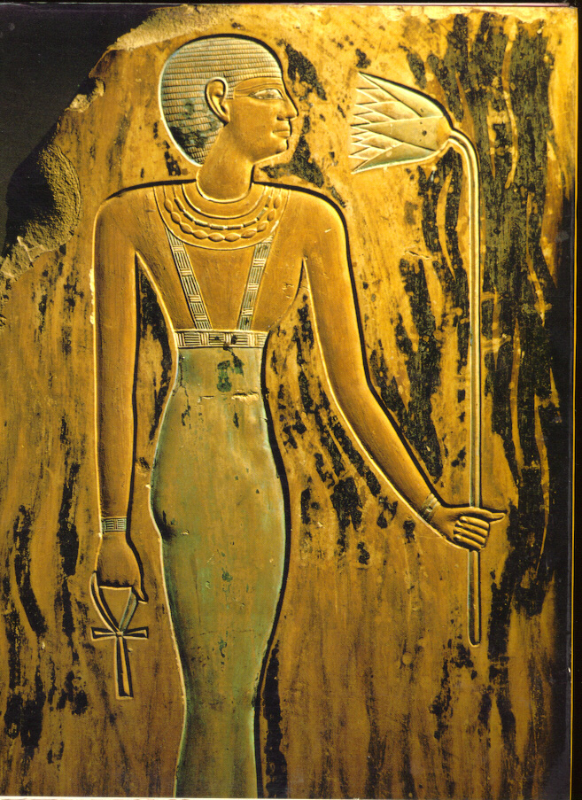 Fragmento del relieve del templo funerario de Mentuhotep II, en Tebas, perteneciente a la XI dinastía del antiguo Egipto, hacia el año 2050 A.C. La figura debe representar una de las esposas secundarias del faraón, dedicada como sacerdotisa al culto del templo del dios Hathor, culto al que Mentuhotep II dió un gran impulso durante su reinado. |