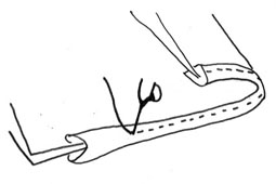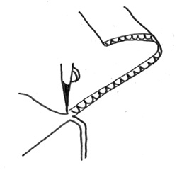 tomamos como ejemplo el cosido llamado "de puntada de cadeneta simple",