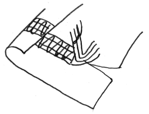 de aguja; los dos extremos de estos hilos, aunque están sueltos,