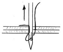 de aguja. La aguja atraviesa el tejido y desciende al punto más