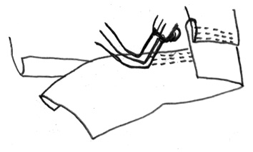 alto. Vuelve a prensarse el tejido, con la lazada abierta. |