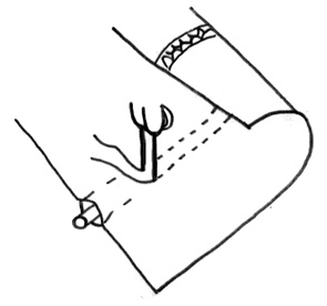 al hilo de la canilla; el garfio hará una segunda vuelta para coger