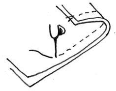 la siguiente puntada; bajo las capas de tejido la lazada quedó doblada