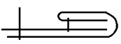 Costuras vistas en sección vertical. Vistas las capas de material a coser, con bordes doblados o planos. La o las líneas verticales indican la posición del hilo de aguja con el que se hace el cosido.
