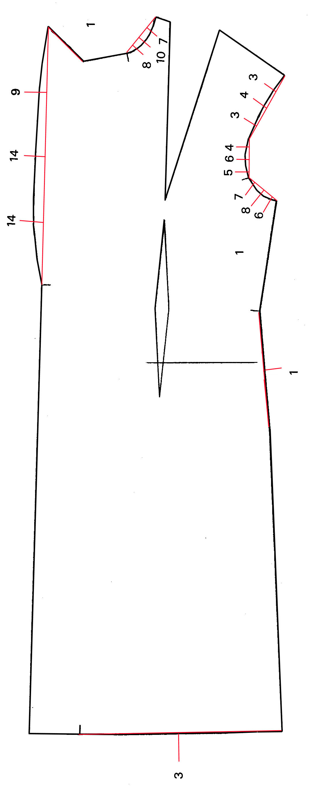 pinza entalle y parte anterior de la de pecho |
