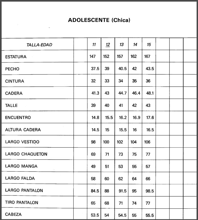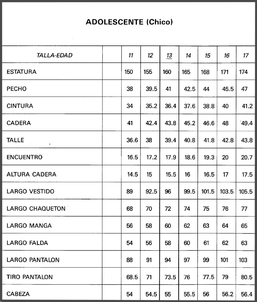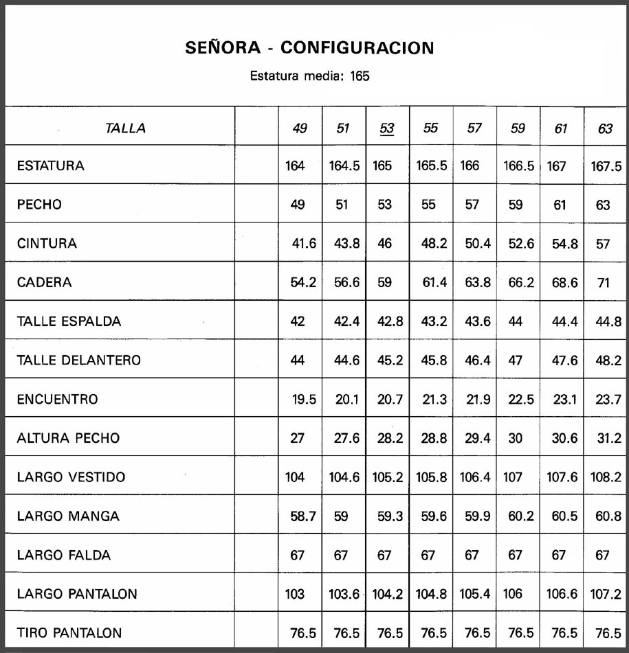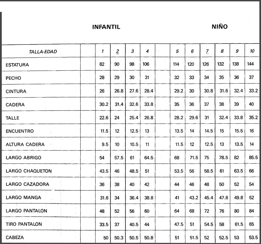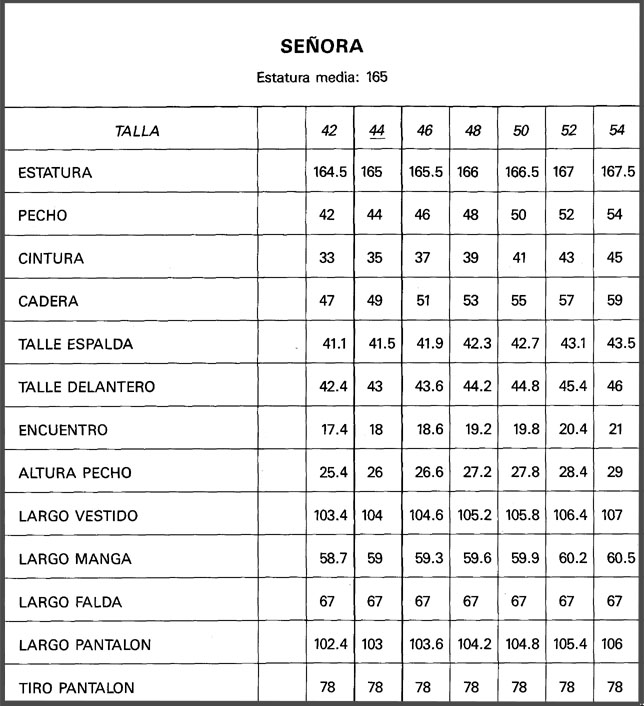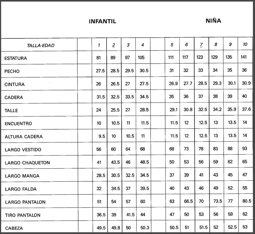 MEDIDAS ESTANDARD DE TALLAS ESPAÑOLAS