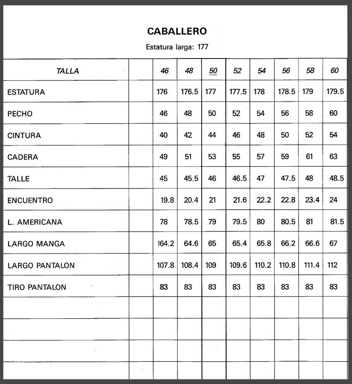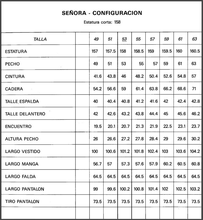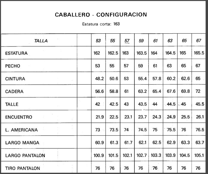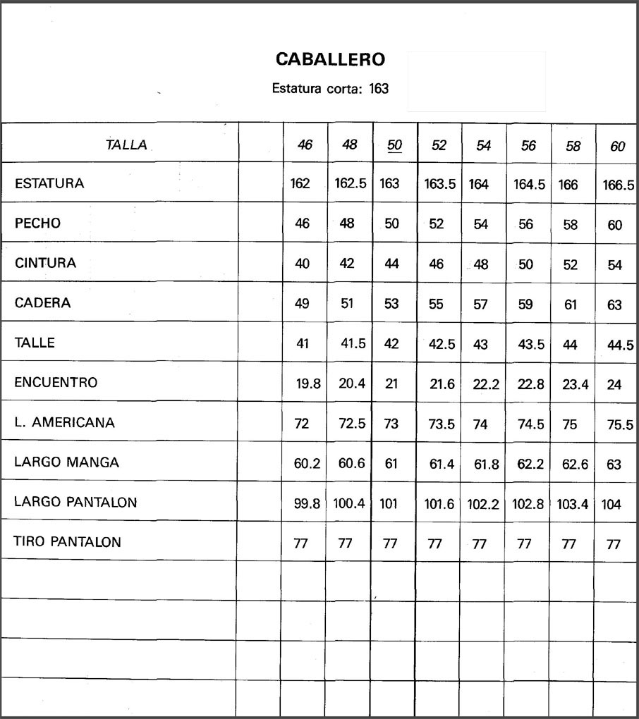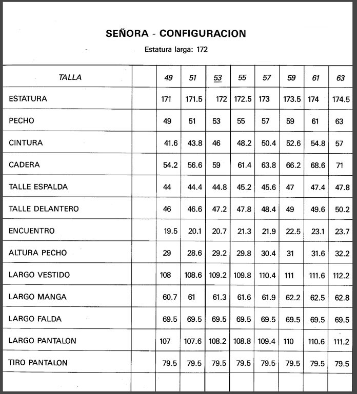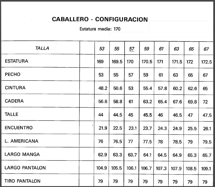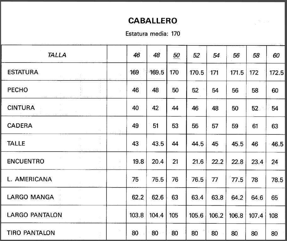 MEDIDAS ESTANDARD DE TALLAS ESPAÑOLAS