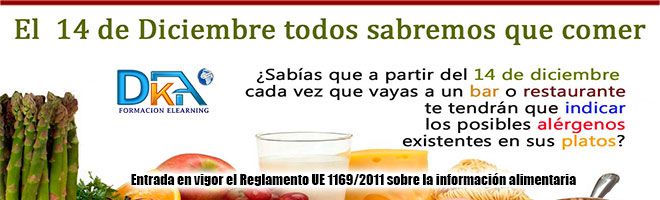 2014 entra en vigor el Reglamento UE 1169/2011 sobre la información alimentaria facilitada al consumidor, en la que se establece la obligatoriedad de comunicar la presencia de alérgenos en los alimentos no envasados destinados a la venta (aperitivos, pinchos, raciones, platos de la carta, menús…..)