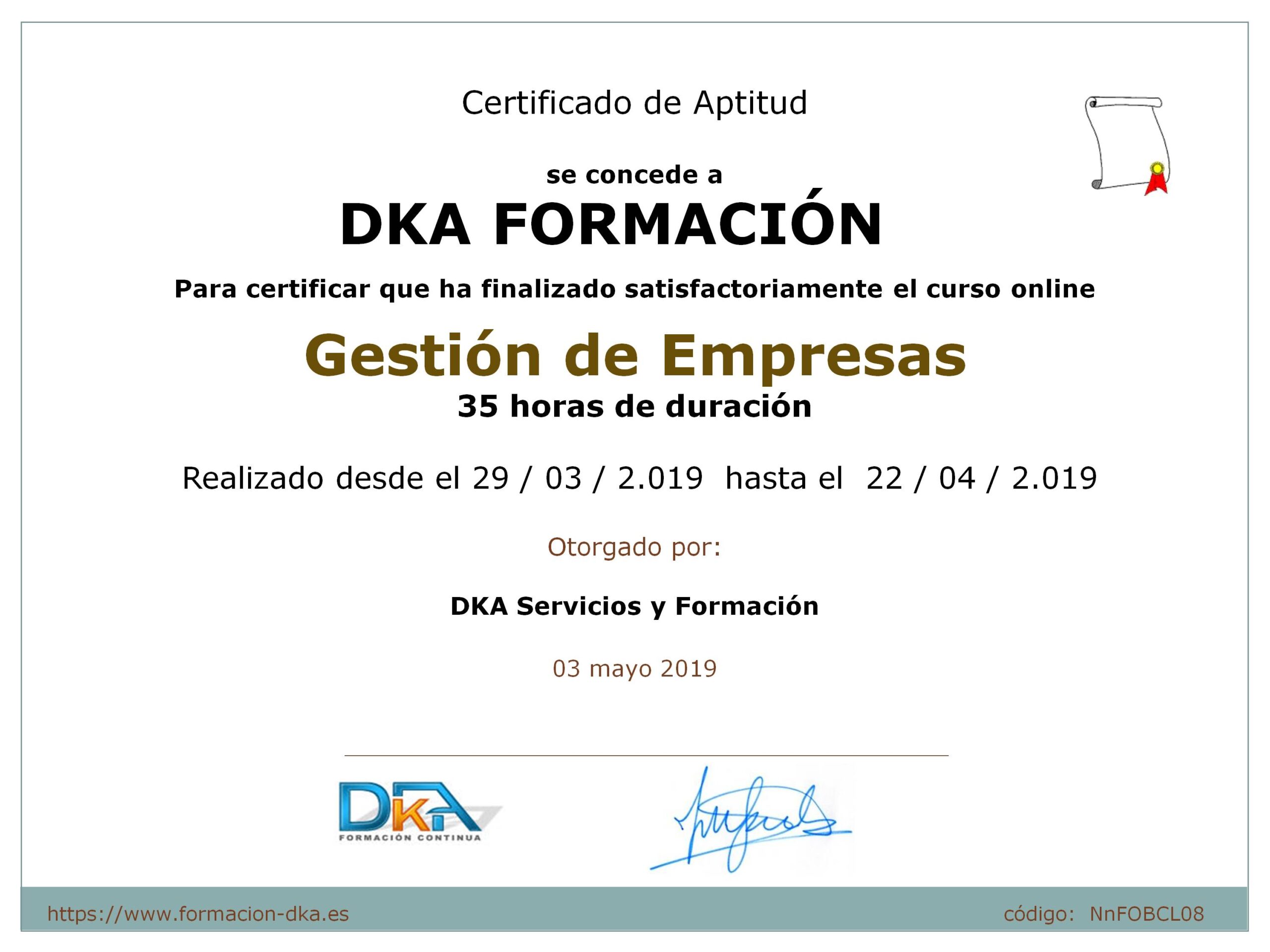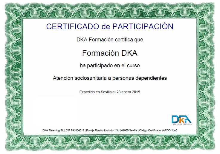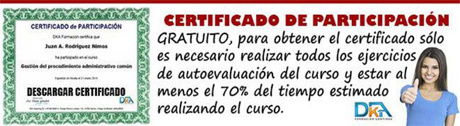 Desde el día 29 de enero de 2015, ofrecemos la posibilidad de obtener gratuitamente el Certificado de Participación en los cursos de la Plataforma de Cursos Gratis DKA (el certificado se descargará directamente de la plataforma en formato pdf).