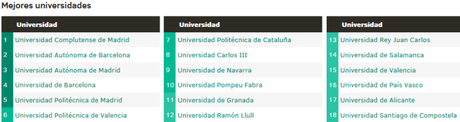 RANKING MEJORES UNIVERSIDADES ESPAÑOLAS